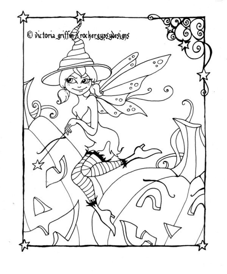 Halloween Afdrukbare Kleurplaten Pagina Halloween Heks Fairy Heks Kleurplaat Voor Volwassenen Kleurplaat Voor Kinderen Halloween Art Pompoenen by etsy.com