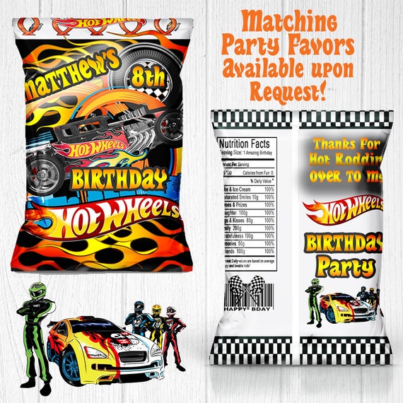 Hot Wheels Theme Birthday Hot Wheels Chip Bag Hot Wheels Party Favor Hot Wheel Custom Chip Bag by etsy.com