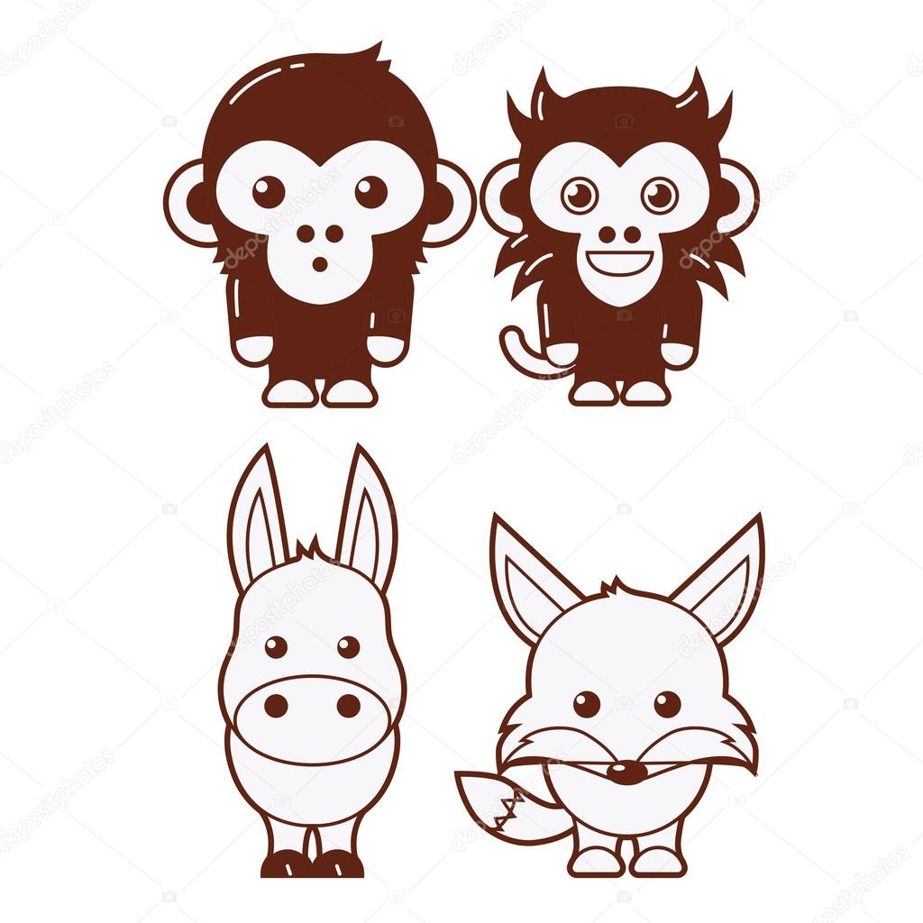 Chimpansee Aap Ezel Fox Schattige Dieren Illustratie by nl.depositphotos.com