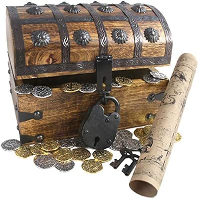 Wooden Pirates Treasure Chest Box Free Lock Key Metal Pirate Coins By Well Pack Box Large 8x6x6 by amazon.com
