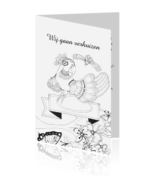 Verhuiskaart Kleurplaat Kaart Papagaai by mycards.nl