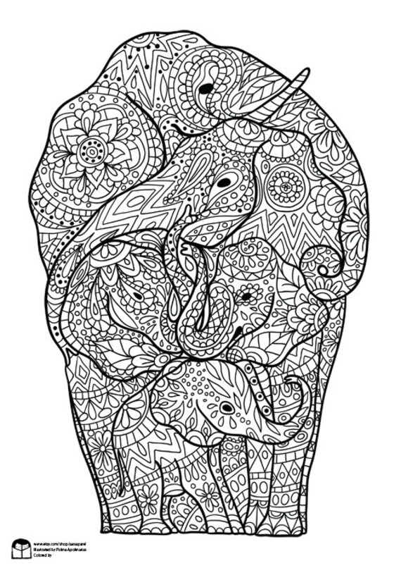 Olifant Familie Volwassen Kleurplaat Kinderen Kleurplaat by etsy.com