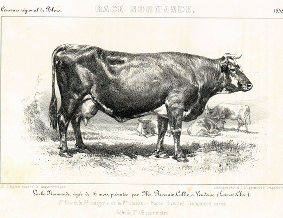 1858 Normand Koe Bull Norman Ras Plaat Gravure Ras Van Koeien Bestuur Originele 19e Zuiver Ras Deco Farm by etsy.com